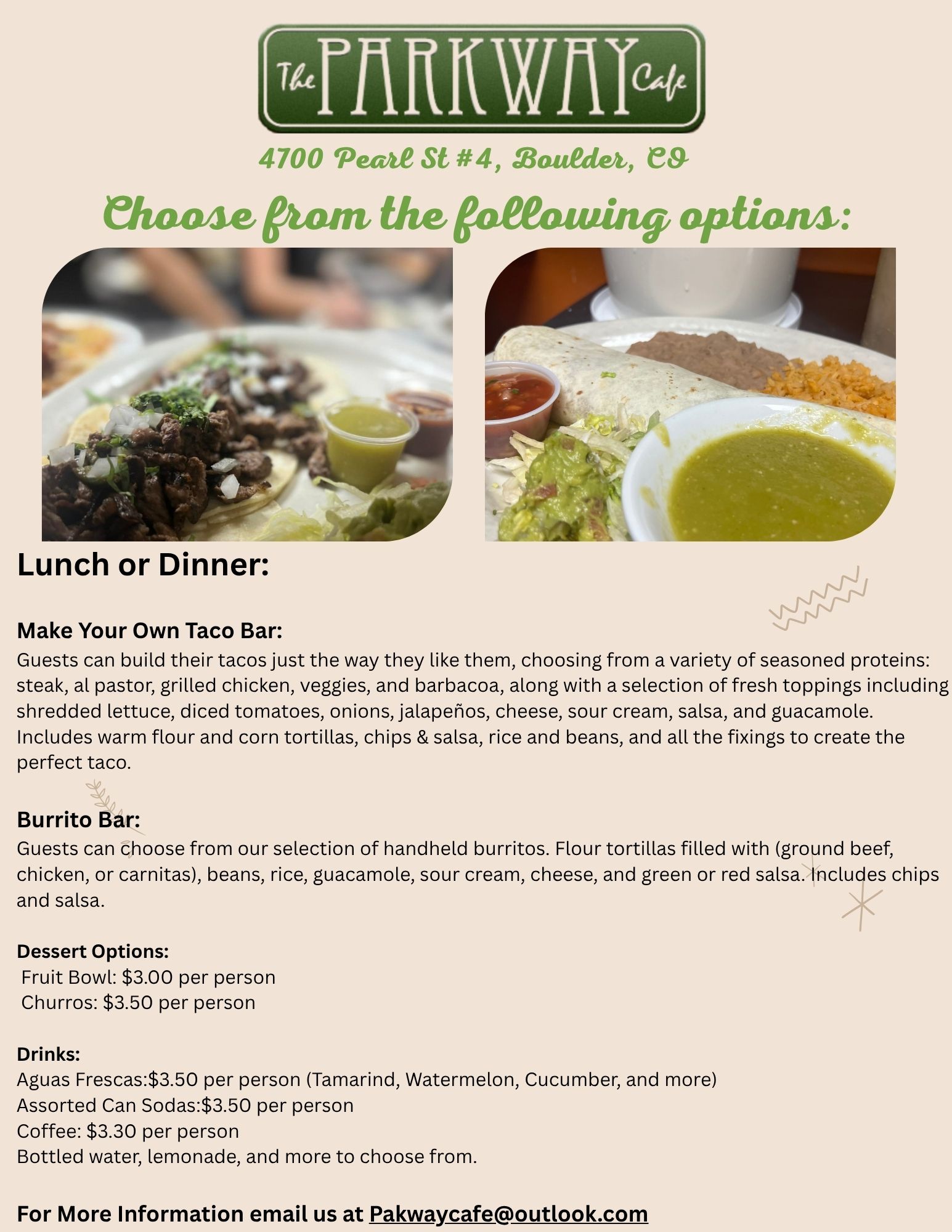 Contact us today to start planning your next event. We'll work with you to create the right menu for your budget and guests.